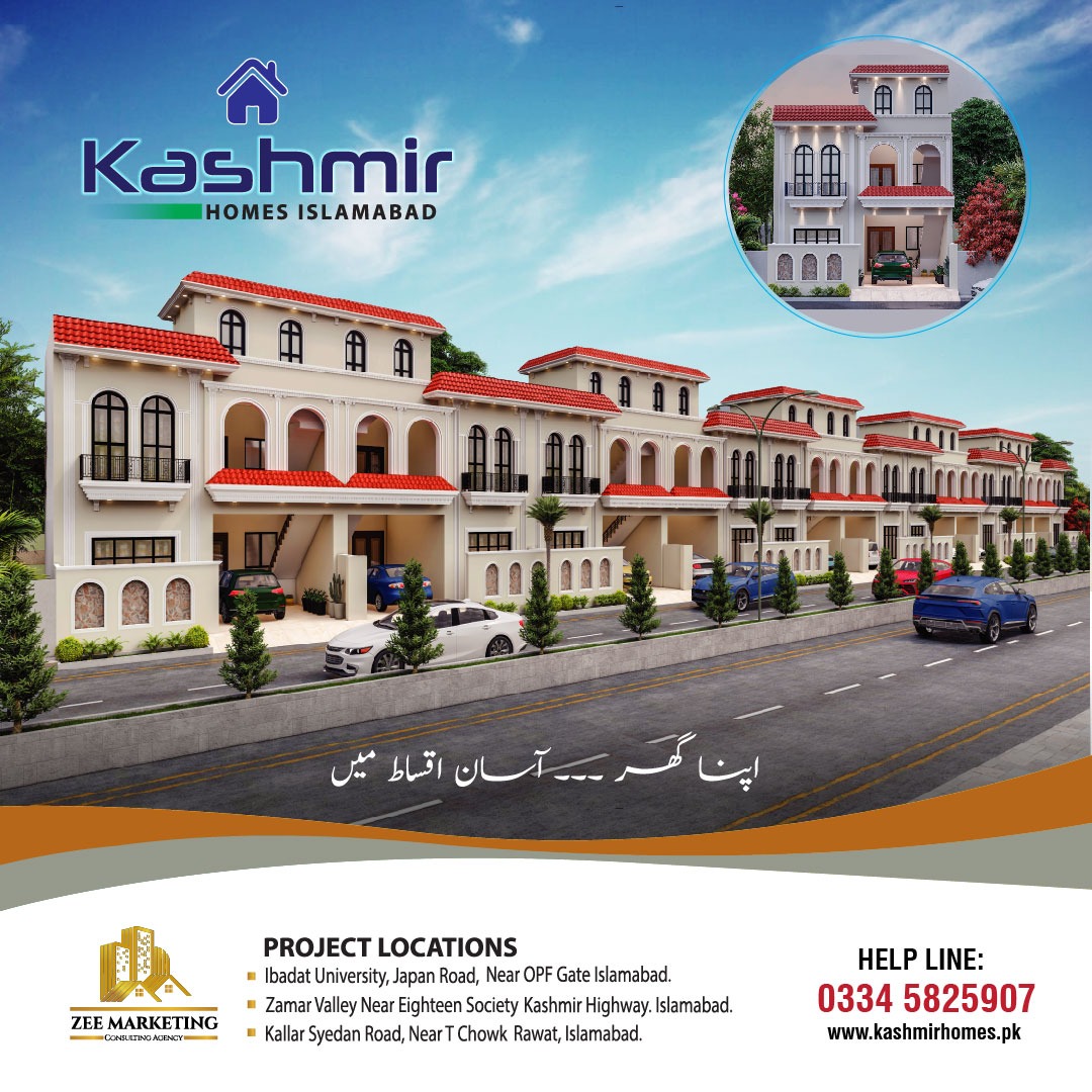 Located on the prestigious main Kashmir Highway, Kashmir Homes Islamabad redefines luxury living with unmatched convenience. As the only housing project in the city offering homes on easy installments, it ensures extraordinary experiences for families and investors alike. Blending modern architecture with serene surroundings, it creates a haven of comfort and elegance. Its prime location, flexible payment plans, and world-class amenities make Kashmir Homes a gateway to exceptional living. Experience a lifestyle that truly stands apart with Kashmir Homes.
