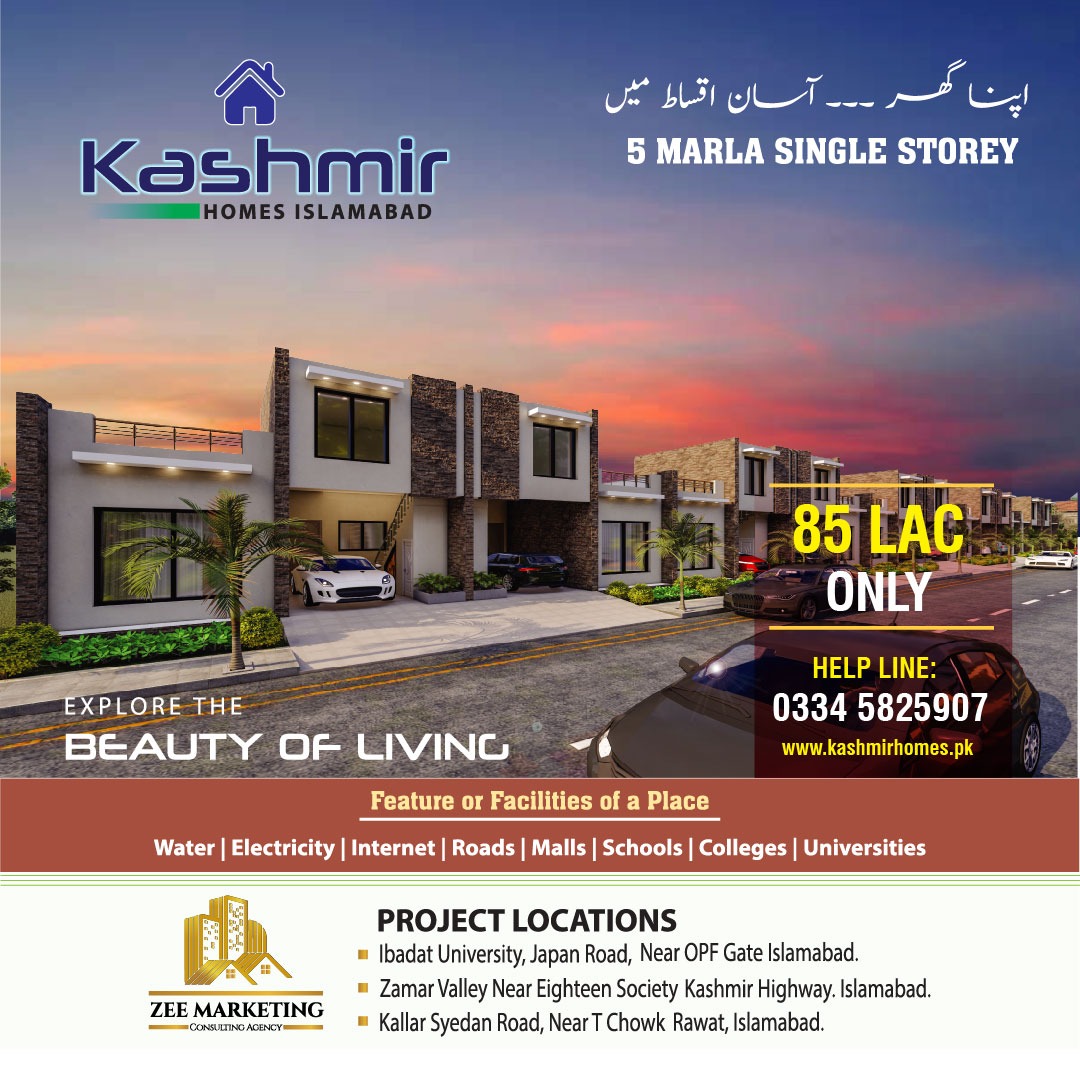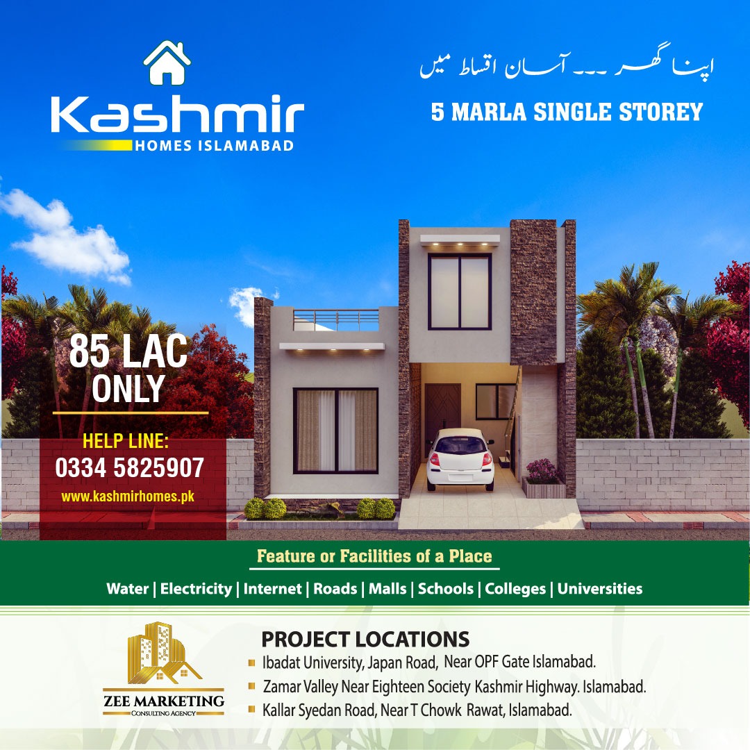 Kashmir Homes Islamabad is an emerging residential project aimed at providing a luxurious and peaceful lifestyle in the capital city of Pakistan. Strategically located, it offers modern amenities and state-of-the-art infrastructure, ensuring a comfortable and secure living environment for residents. With a focus on affordability and quality, Kashmir Homes stands out as an excellent choice for families and investors seeking a blend of contemporary design and serene surroundings in Islamabad.